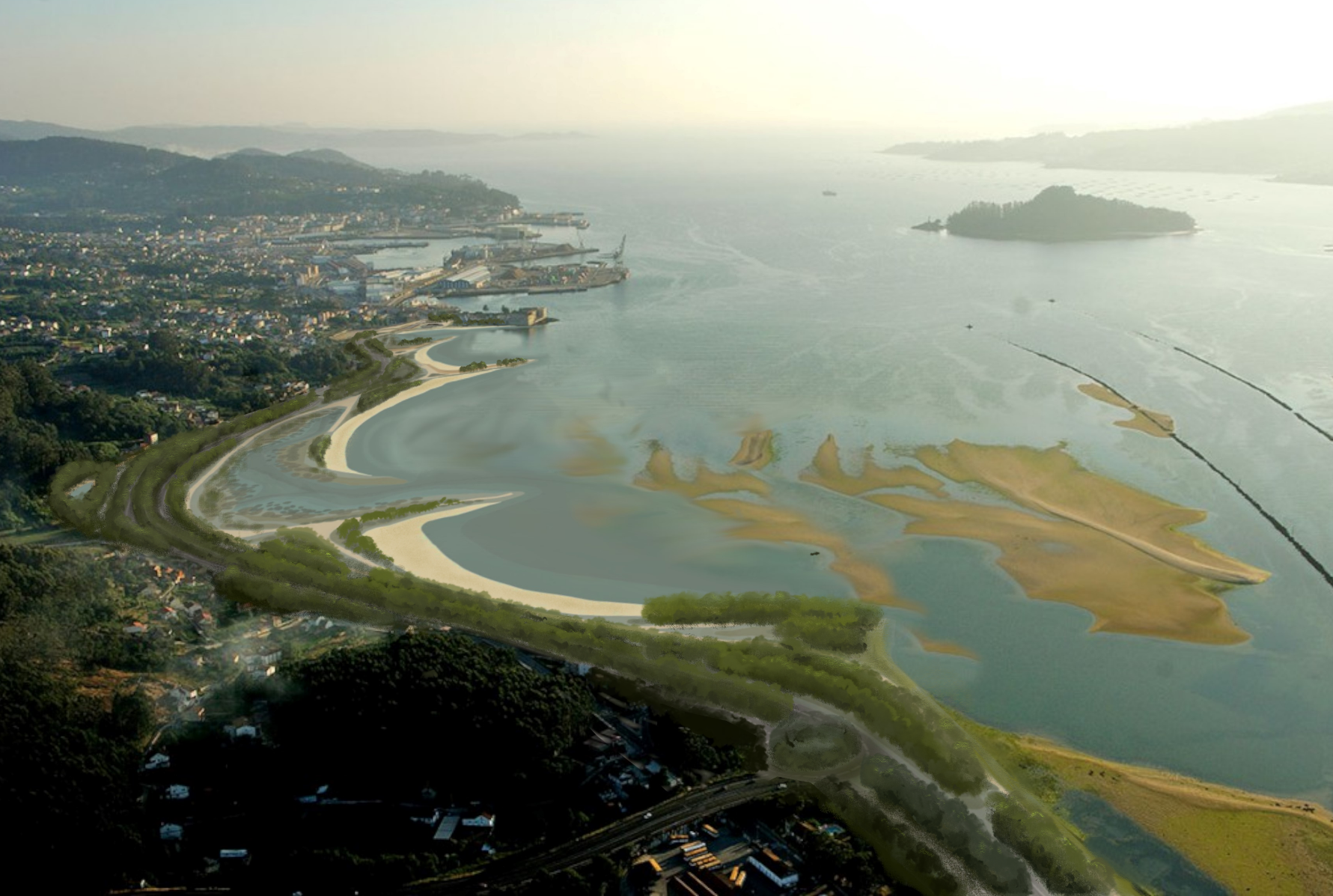 - [10] A nova topografía, permite, ademais, reciclar no mesmo ámbito o material do actual recheo, reducindo a pegada ecolóxica e o impacto ambiental do traslado en camións. As fases do proxecto contemplan períodos paulatinos de descontaminación in-situ mediante procesos naturais.
