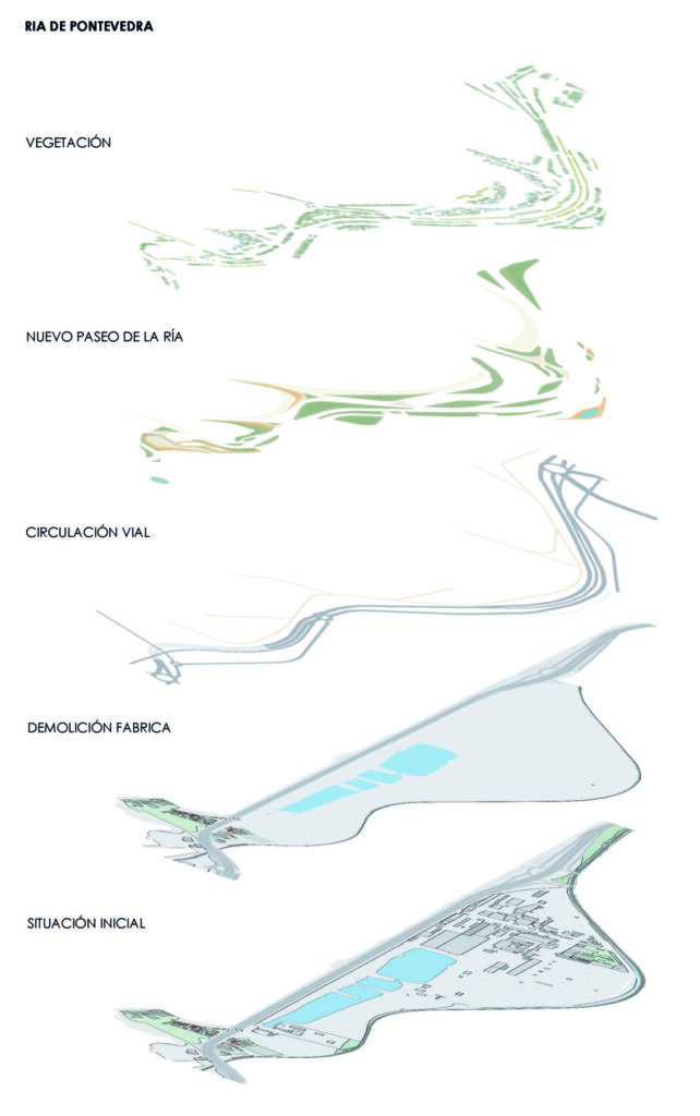 - Asúmese o traslado da fábrica fóra da ría e a recuperación de 31 ha de recheo que é devolto a ría. Aplicaríanse medidas de des-contaminación para recuperar o material do recheo nunha nova topografía.