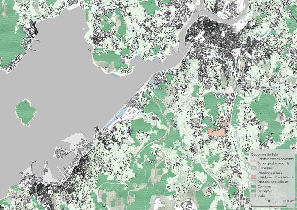 Pouco queda xa das carballeiras e dos cultivos de centeo e viña que describía o catastro de Ensenada. O eucalipto é a especie dominante das masas forestais, que foron avanzando a partir do cultivo para explotación no centro de investigación forestal de Lourizán, das especies globulus e nitens nos anos 50. O bosque de eucalipto chega da cume ao mar, pechando a vista dos antigos miradoiros e transformando o mosaico agrícola que aínda non caeu no abandono. A urbanización está máis concentrada na ribeira da ría e vaise disgregando monte arriba, excepto polas trincheiras creadas polas infraestruturas, que fomentan aínda máis a segregación dos ecosistemas e a conectividade precisa para a súa conservación.