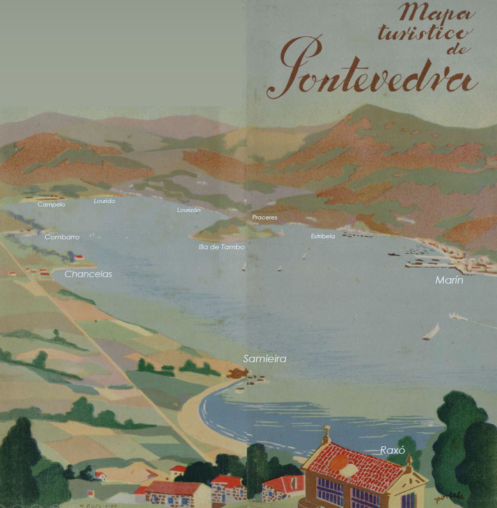 Otero Pedrayo describiu as rías coma unha “síntese admirable da Paisaxe Galega, onde o mar informe, colle forma enchendo con harmonía o vaso de cunca de granito labrado”. Engadía que, para entender Galicia, había que estudiar a luz do Atlántico na ría, nos seus rochedos e areais. Na súa Guía de Galicia fala da concorrida praia dos Praceres, da fermosa Finca dos herdeiros de Montero Ríos e debuxa unha ría de Pontevedra coma un espello de augas azuis, delicadamente bordeada por praias louras e a roca cupular de Tambo.