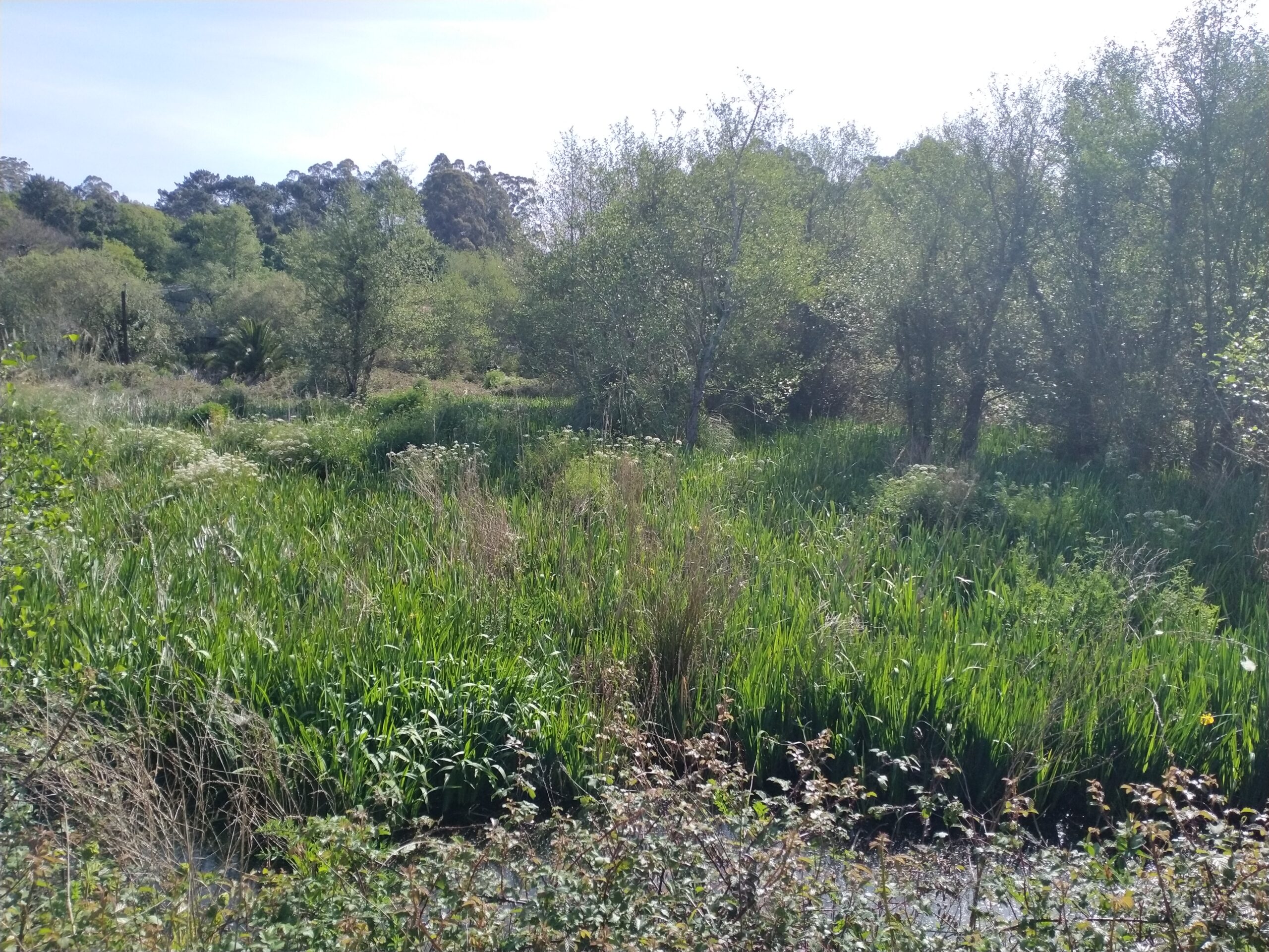 A Gandarela é unha xunqueira onde a unión entre a auga salgada da ría e a doce do río producen varias comunidades: no ámbito máis próximo a ría fórmase unha comunidade halófila de organismos de medios salinos (verdolaga mariña), augas arriba vaise definindo unha comunidade higrófila de vexetación de ambientes acuáticos (xuncos e lirios) e xa chegando ao ameneiral atópase a vexetación propia dunha comunidade riparia. A conservación de ambos está ameazada polas fortes presións da acción humana e a contaminación. Ademais da propia fábrica de Ence, estes hábitats foron parcialmente ocupados por unha subestación eléctrica, as cocheiras dunha empresa de transporte e as autovías da costa e conexión coa AP-9.