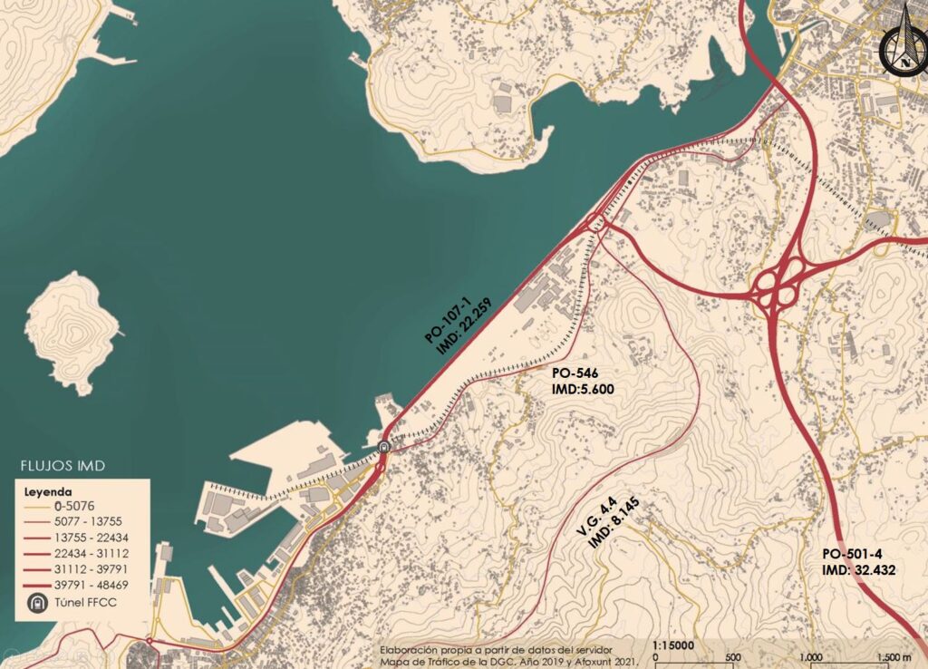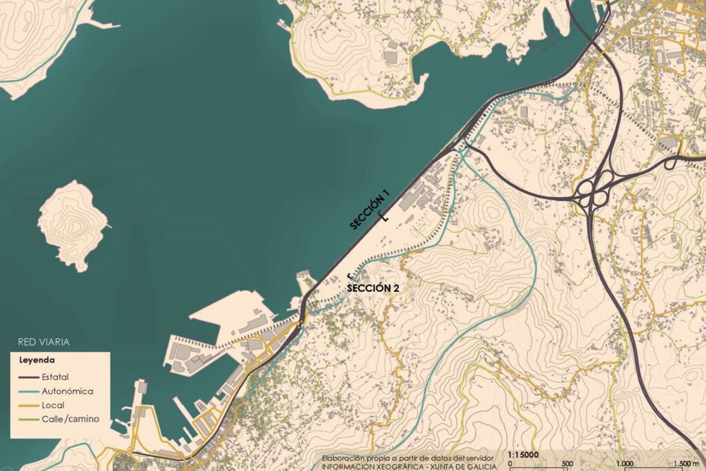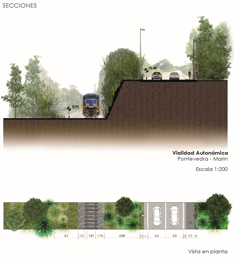 Un dos condicionantes máis importantes de cara a re-naturalización da zona é a relación co porto de Marín, que forma parte da rede de Autoridades Portuarias do Estado é, polo tanto, é necesario manter a conectividade a través dunha vía de titularidade estatal, que facilite a entrada e saída das mercancías. Actualmente, o principal acceso ao porto se realiza pola autovía PO-107-1, cunha capacidade de dous carrís por sentido e unha intensidade media diaria (IMD) por enriba dos 20.000 vehículos, dos que 1.500 son vehículos pesados. O porto conta tamén cunha rede ferroviaria que o conecta o peirao de graneis e a zona de contedores coa estación de Pontevedra, e dende aí co eixo Atlántico. Polo tanto, o tramo de vía que atravesa Lourizán está exclusivamente dedicado as necesidades do porto.