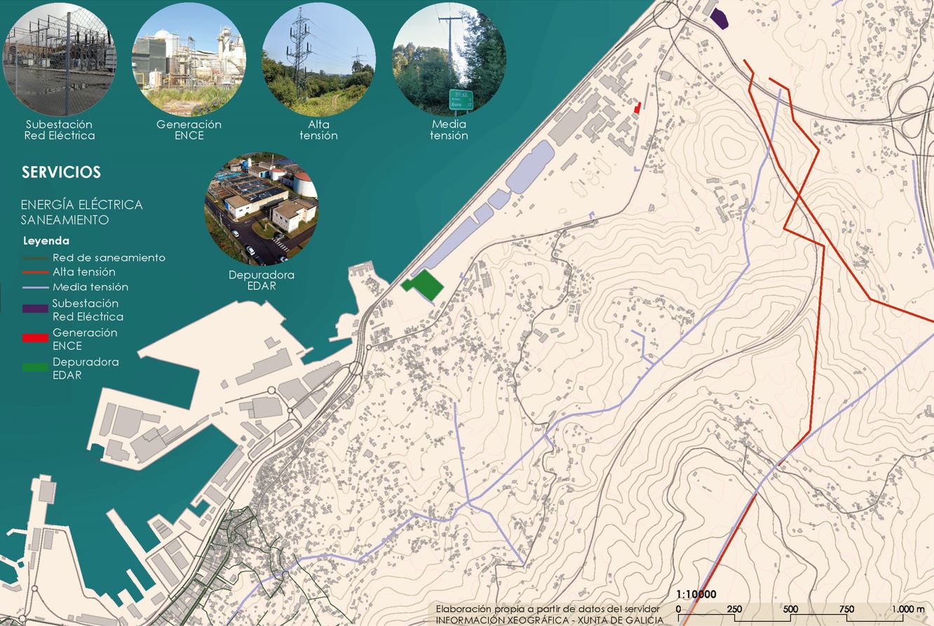A condición pública do recheo de Lourizán propiciou que non so se instalase as fábricas de celulosa e cloro, senón tamén instalacións que non tiñan cabida na cidade. Unha vez consolidado o seu carácter industrial, xa non era necesario preocuparse polo impacto que as novas infraestruturas causaban neste territorio. Deste xeito, ao carón da fábrica atopamos unha subestación eléctrica, coas súas liñas de alta tensión, unhas cocheiras, e unha estación de depuración de augas residuais (EDAR).